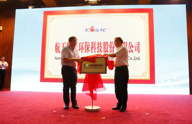 湖南省副省長張劍飛,中國航天科工集團(tuán)公司黨組書記、董事長高紅衛(wèi)共同為“航天凱天環(huán)??萍脊煞萦邢薰尽苯遗啤?/p>